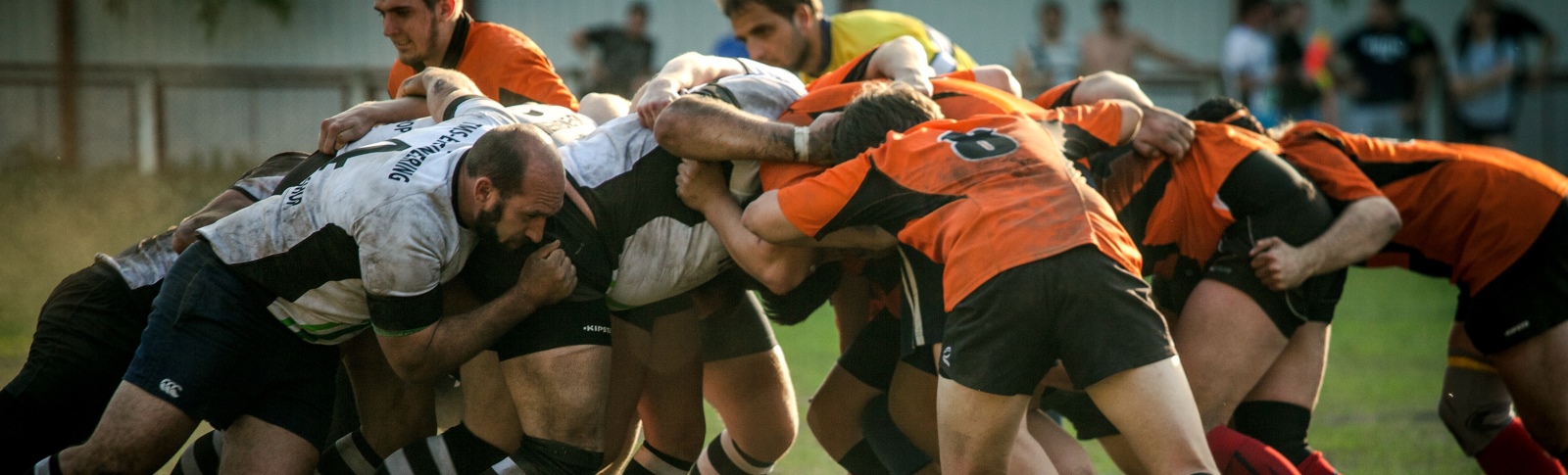 Have you ever seen a rugby game? Then you surely have seen how the players face each other, their heads interlocked, they cling together and push forward with all their might. They are trying to gain possession of the ball thrown in from the side. In English this is called the ‘scrum’.